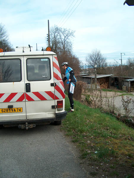 10 minutes de route et c'est le premier abandon ! Ingo monte dans la voiture balai ! Quelle organisation !!